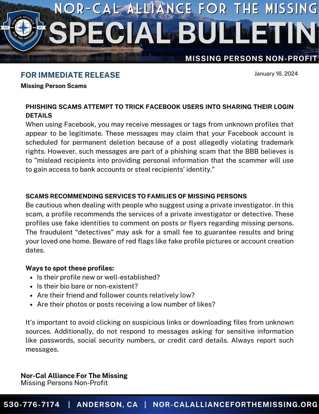 For further information about Nor-Cal Alliance For The Missing and the services we provide, please visit our website